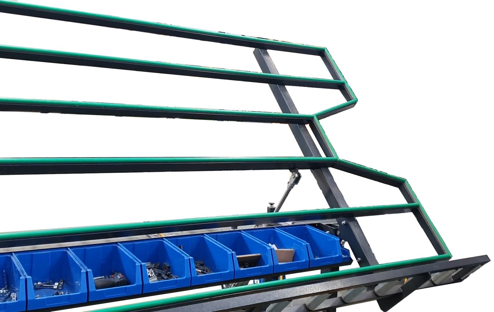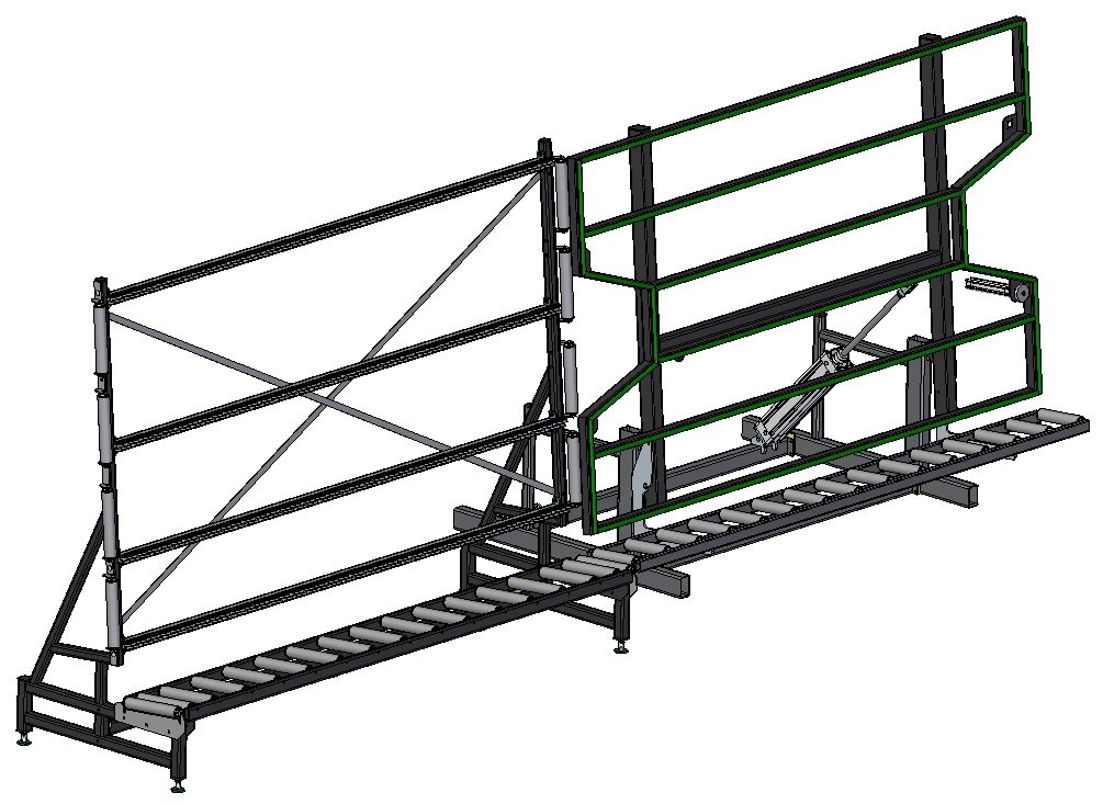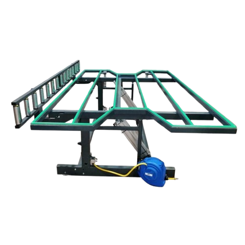 Banco de trabajo basculante diseñado para realizar el montaje de las hojas en el marco.